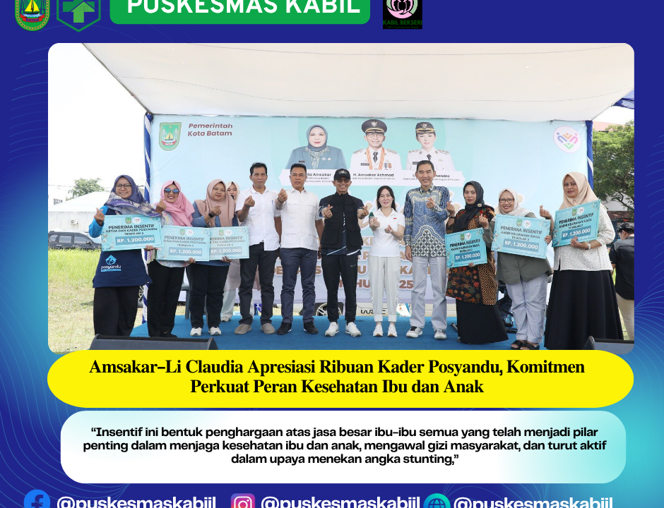 Puskesmas Kabil & ๐๐ข๐ฌ๐ค๐จ๐ฆ๐ข๐ง๐๐จ ๐๐๐ญ๐๐ฆ-Pemerintah Kota Batam terus mendukung peran penting para kader posyandu sebagai garda terdepan pelayanan kesehatan dasar...